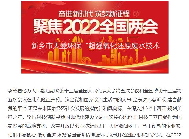 中國高新技術網發布:《關注:解碼科技創新》——新鄉市天盛環?!俺瑥娧趸€原廢水處理技術”